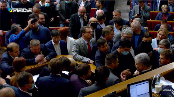 13:33 Нардепы от "ЕС" пришли к Стефанчуку, стоят рядом и кричат: "Ты - последний диктатор". А также: "Лу-ка-шен-ко". Стефанчук ответил: "Он не придет, он в другой стране, это вам к Шевченко".