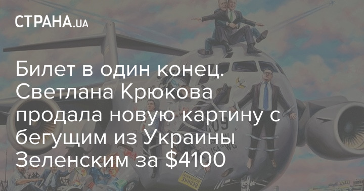 Заместитель главного редактора "Страны" Светлана Крюкова продала свою новую картину под названием "One way ticket", посвященную экстренно убегающему из Украины президенту Владимиру Зеленскому и его приближённых на американском самолёте.