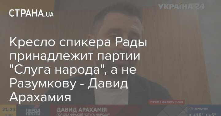 Я просто хочу прокомментировать простые вещи, которые действительно все понимают... Я всем напоминаю, что это кресло спикера фактически принадлежит "Слуге народа" на сейчас, и действующий спикер был делегирован от "Слуги народа"...  И если человек больше не "слуга народа" или его мысли не совпадают со "слугами народа", он просто будет заменен, как и все другие должности, как и в Кабинете министров было...", - заявил Давид Арахамия.