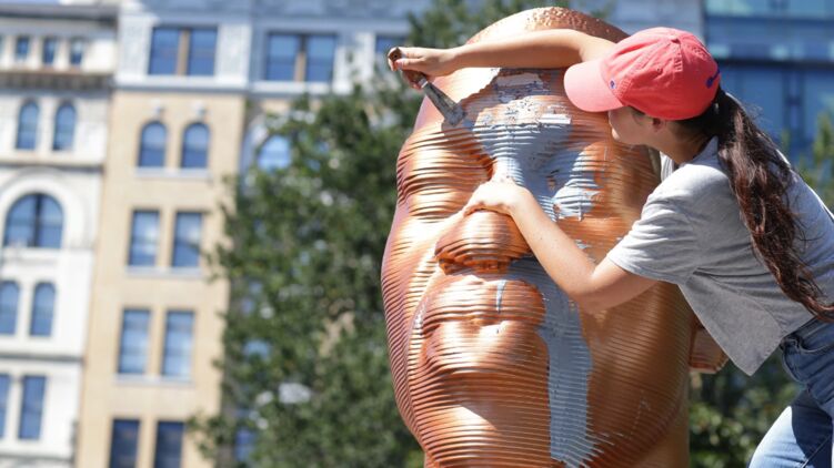 В Нью-Йорке памятник Джорджу Флойду облили серой краской. Фото