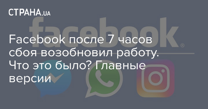 В компании Facebook, которая также владеет Instagram и WhatsApp, сообщили, что в курсе проблемы. Сотрудники Цукерберга сначала обещали восстановить работоспособность сервисов как можно скорее. Но по итогу дело затянулось на семь часов.