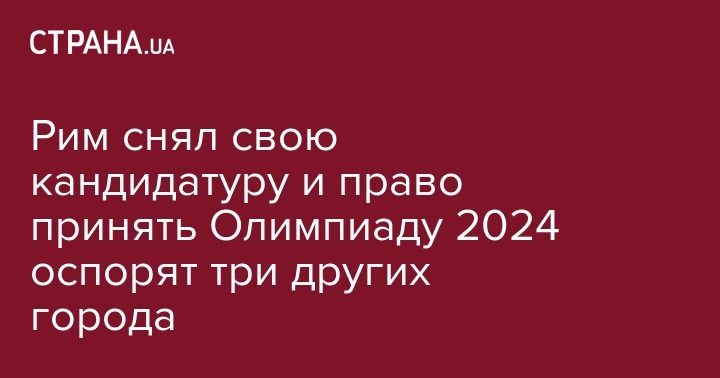 Национальный олимпийский комитет Италии официально отозвал кандидатуру Рима ранее претендовавшего на проведение Олимпийских игр 2024 года, сообщает Reuters.