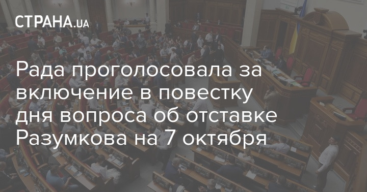 Верховная Рада Украины проголосовала за включение в повестку дня вопроса об отставке Дмитрия Разумкова с поста спикера парламента в четверг, 7 октября, в начале было принято решение о его отстранени от ведения заседаний на два дня.