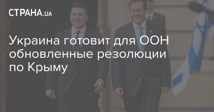 Украина намерена до конца 2021 года внести на рассмотрение Генеральной ассамблеи Организации Объединенных Наций обновленные резолюции, которые касаются ситуации с правами человека в аннексированном Крыму, а также милитаризации временно оккупированного полуострова. Об этом заявил президент Украины Владимир Зеленский во время совместного брифинга с президентом Израиля Ицхаком Герцогом.