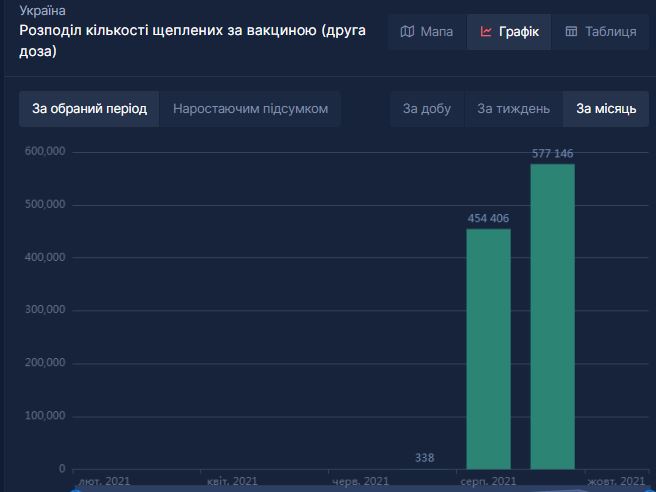 Судя по статистике, по состоянию на 6 октября в Украине второй дозой "Модерны", после которой наблюдались случаи миокардита, привили чуть более одного миллиона человек (примерно 1,1 млн).