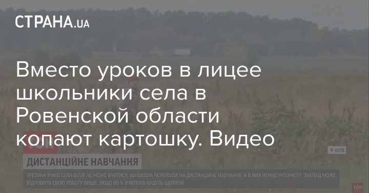 В Ровенской области школьники копают картошку вместо того, чтобы сидеть на уроках. Школа  в селе Вилья перешла на дистанционное обучение после отказа части учителей опорного лицея вакцинироваться, а потому заведение не дотягивает до определенных властями 80 процентов привитых учителей.