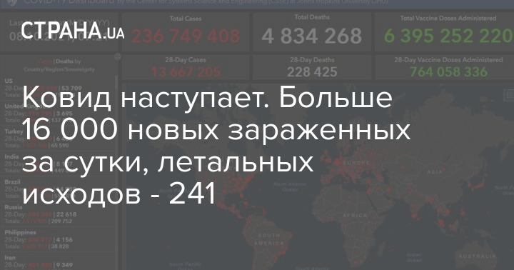 Ковид наступает. Больше 16 000 новых зараженных за сутки, летальных исходов - 241