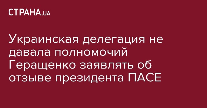 Украинская делегация не давала полномочий Геращенко заявлять об отзыве президента ПАСЕ