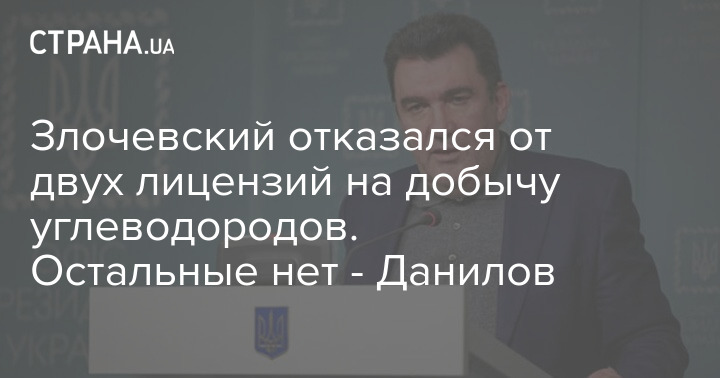 "Люди, которые известны в нашей стране, продолжают отказываться от лицензий, которые в свое время они получали. На сегодняшний день мы можем поблагодарить семью Злочевских: они отказались от двух лицензий на углеводороды, принадлежавших семье Злочевских", - сказал Данилов.