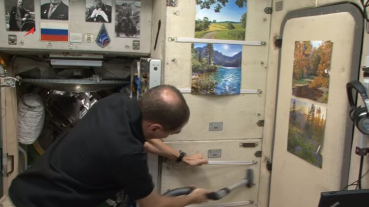 Уборка на МКС проходит в состоянии невесомости. Фото: Roscosmos Media/YouTube