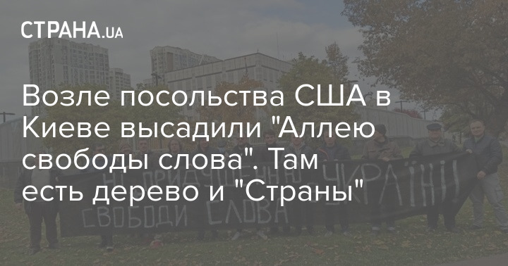 Возле посольства США в Киеве высадили "Аллею свободы слова". Там есть дерево и "Страны"