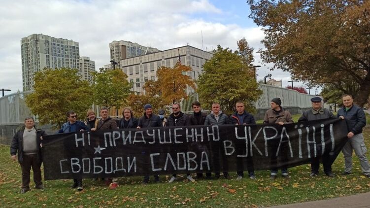 Участники акции обратились к американским дипломатам с требованием отреагировать на массовые системные нарушения свободы слова, которые происходят в Украине.