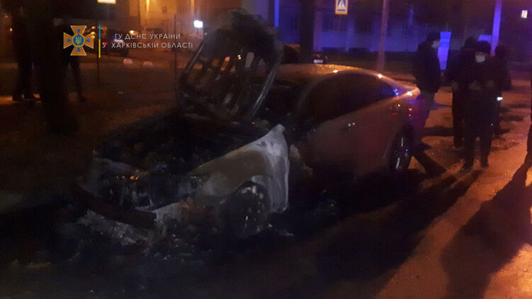 В Харькове сожгли дорогой автомобиль. Фото: kh.dsns.gov.ua