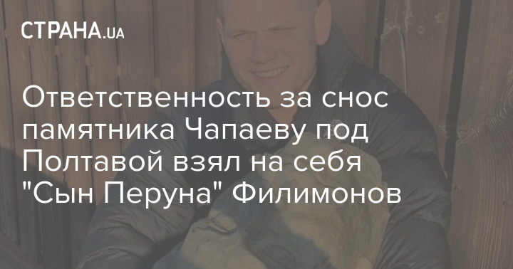 Ответственность за снос памятника Чапаеву под Полтавой взял на себя "Сын Перуна" Филимонов