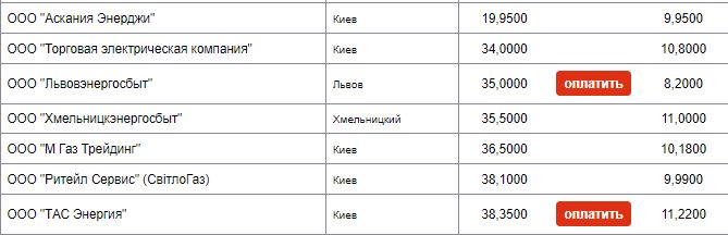 Самый дорогой у "Львовэнергосбыт", "Хмельницкэнергосбыт", "М Газ Трейдинг", "Ритейл Сервис", "ТАС Энергия" - от 35 до 38,35 грн.