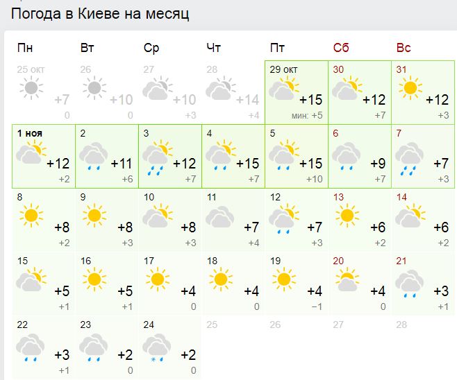 Прогноз погоды в Киеве в ноябре от gismeteo