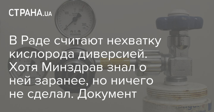 Глава Комитета Рады по вопросам здоровья нации, медицинской помощи и медицинского страхования Михаил Радуцкий заявил, что остановка крупных заводов по производству кислорода может быть диверсией.