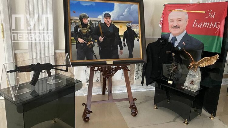 Автомат Александра Лукашенко на выставке во Дворце независимости в Минске. Фото: Пул Первого/Telegram