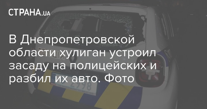 В Днепропетровской области хулиган устроил засаду на полицейских и разбил их авто. Фото