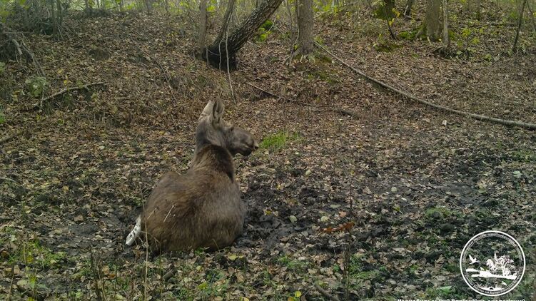 "Даже на опавших листьях не так приятно отдыхать, как в мягкой грязи лесной лужи", - прокомментировали кадр работники заповедника в зоне отчуждения ЧАЭС.