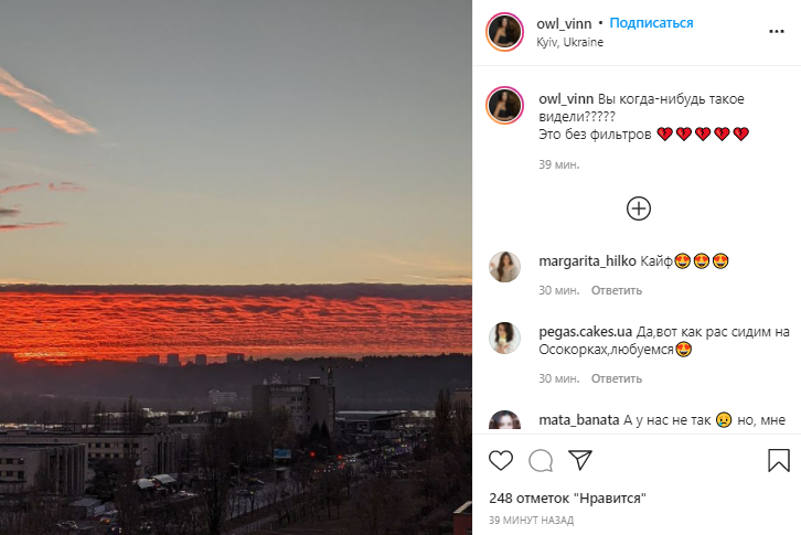 Это без фильтров", - подписала снимок юзер с ником owl_vinn.