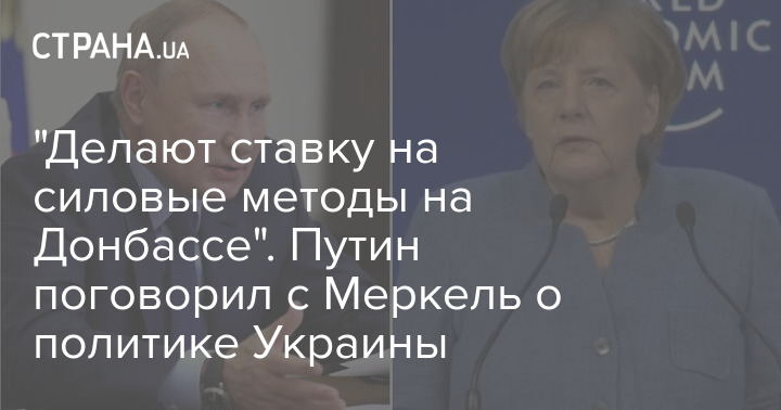 Президент России Владимир Путин в сегодняшнем телефонном разговоре с и.о. федерального канцлера Германии Ангелой Меркель назвал политику Киева деструктивной и заявил, что Украина делает ставку на силовые методы в решении проблем Донбасса. Об этом говорится в сообщении на сайте Кремля.