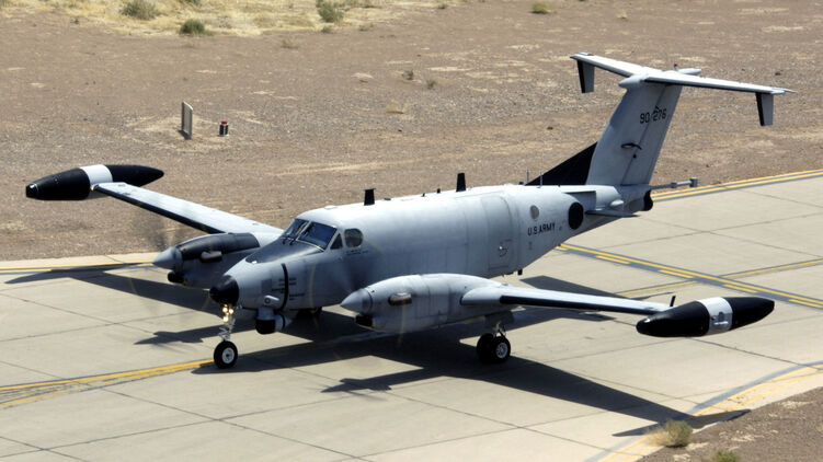 Beechcraft RC-12 - тактический самолет радиоэлектронной разведки, принят на вооружение в 1984 году. Входит в дивизион авиационного обнаружения и перехвата электронных сигналов.