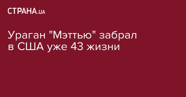 Количество погибших в результате урагана "Мэттью" в США возросло до 43 человек. Об этом сообщает УНН.