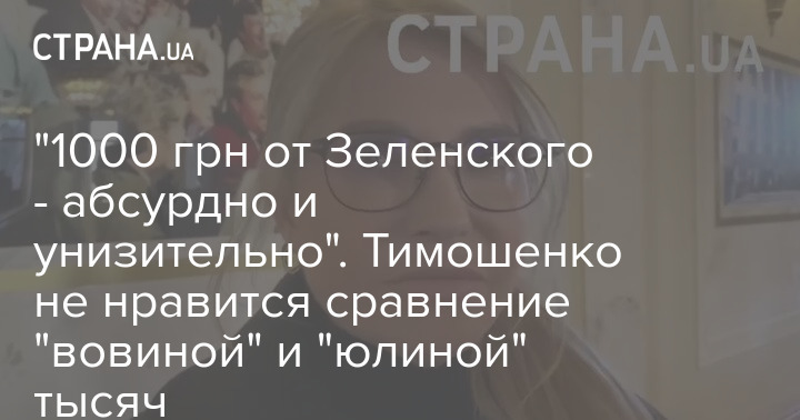 "1000 грн от Зеленского - абсурдно и унизительно". Тимошенко не нравится сравнение "вовиной" и "юлиной" тысяч