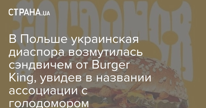 В Польше украинская диаспора возмутилась сэндвичем от Burger King, увидев в названии ассоциации с голодомором