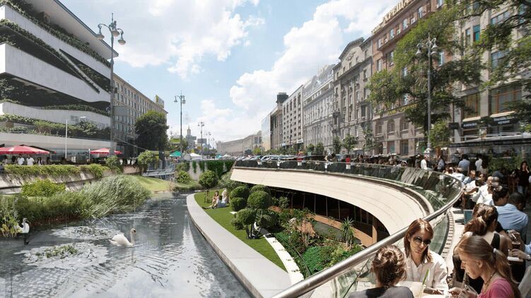"Виктор Билоус и Zemlia Studio обнародовали на Вehance концепцию "Восстановление реки Крещатик"", - рассказала она.
