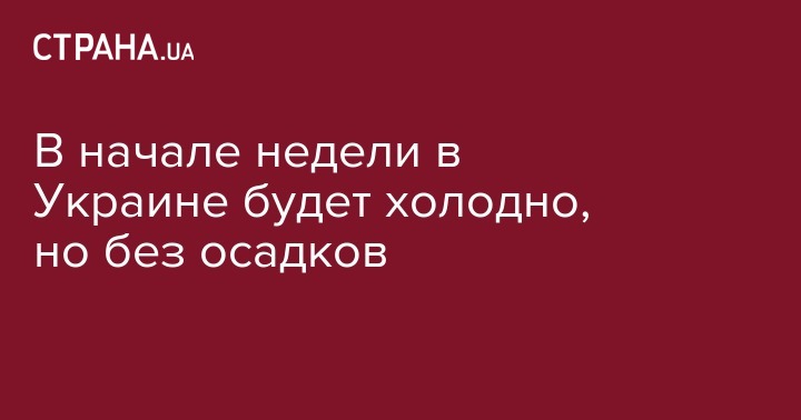 Начало недели в Украине будет без осадков, ветер преимущественно восточный, 5-10 м/с. Температура ночью от до 3° мороза до 2° тепла, днем 4-9° тепла; в Закарпатье и на крайнем юге ночью 1-6° тепла, днем 7-12°.