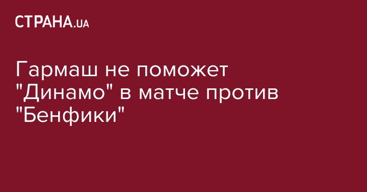 Гармаш не поможет "Динамо" в матче против "Бенфики"
