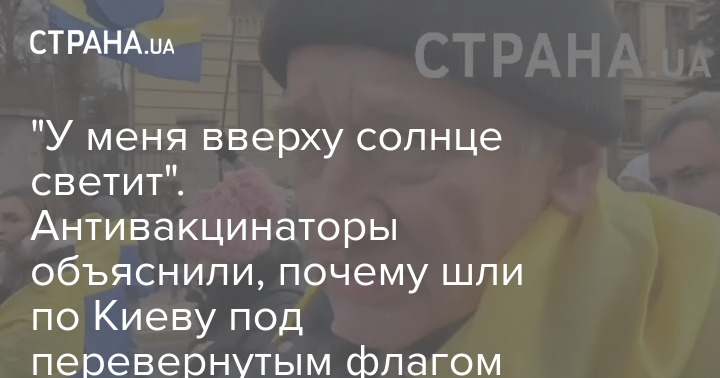 "У меня вверху солнце светит". Антивакцинаторы объяснили, почему шли по Киеву под перевернутым флагом Украины