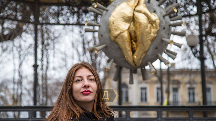 В Одессе решили привлечь внимание к домашнему насилию в пандемию скульптурой коронавируса с золотым влагалищем