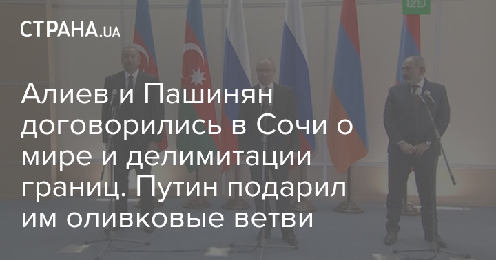 Премьер-министр Армении Никол Пашинян и президент Азербайджана Ильхам Алиев в Сочи подписали совместное заявление о стабилизации ситуации в Нагорном Карабахе. В связи с этим президент России Владимир Путин подарил им оливковые ветви в качестве символа мира.