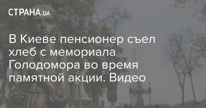 В Киеве пенсионер съел хлеб с мемориала Голодомора во время памятной акции. Видео