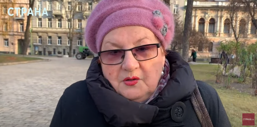"Я вообще не верю. Я не нигилист. Я верю в здравый смысл людей. Не верю я [в госпереворот]. Это Ирина Геращенко сказала, я по телевизору смотрела. Ирина Геращенко сказала, что 1 декабря переворот готовится. Нет, не верьте", - отвечает пенсионерка.