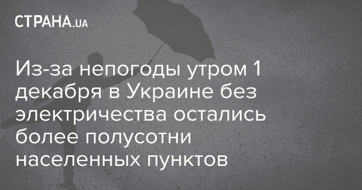 "В ночь с 30 ноября на 1 декабря в результате осложнения погодных условий (порывы ветра, мокрый снег) из-за срабатывания систем защиты линий электропередач обесточены 56 населенных пунктов в 3 областях, а именно: Сумская – 39, Одесская – 16 и Донецкая – 1", – говорится в утренней сводке на сайте ведомства в среду.