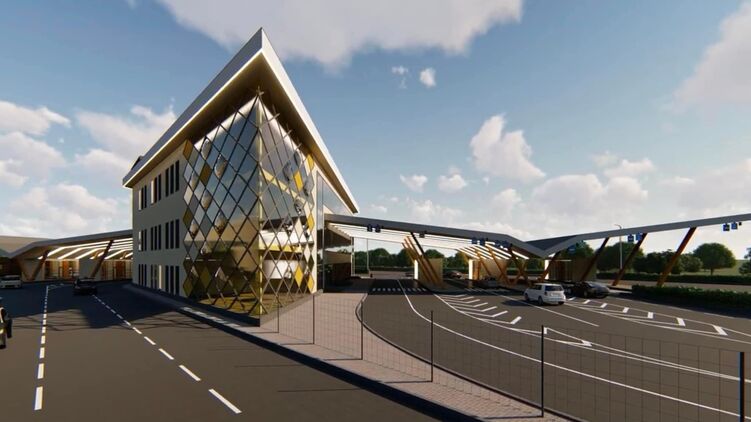 Там планируют построить четыре полосы для грузовых машин, шесть полос для легковых авто, две полосы для автобусов и две для пешеходов.