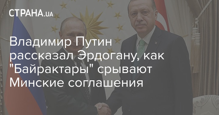 Президент Российской Федерации Владимир Путин в телефонном разговоре с президентом Турции Эрдоганом заявил, что Украина продолжает попытки срыва минских соглашений, о чем свидетельствует применение турецких "Байрактаров".