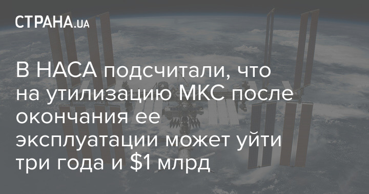 Национальное управление США по аэронавтике и исследованию космического пространства (НАСА) подсчитало, что процесс утилизации Международной космической станции после выведения из эксплуатации может занять от шести месяцев до трех лет. А стоимость утилизации станции сейчас оценивается в $1 млрд.
