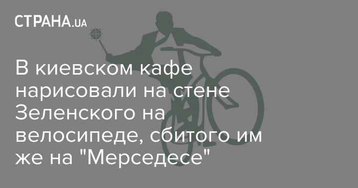 В кафе человек с булавой изображен сбитым роскошным "Мерседесом", под колесами которого виднеется смятый велосипед. А из окна авто высовывается двойник сбитого - тоже с булавой. Символический смысл изображения вполне прозрачный: сериальный образ, на который клюнули большинство избирателей Зеленского, оказался далеким от реального. Причем его очарование разрушил сам Зеленский.