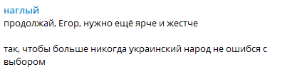 так, чтобы больше никогда украинский народ не ошибся с выбором", - прокомментировал выступление политика телеведущий Максим Назаров в своем Telegram-канале "наглый".