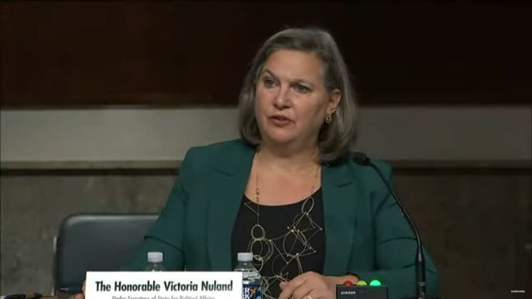 Заместитель государственного секретаря по политическим вопросам Виктория Нуланд дает показания об отношениях между США и Россией в Сенате США. Она заявила, что РФ готова двинуть против Украины "почти все наземные войска к западу от Урала".