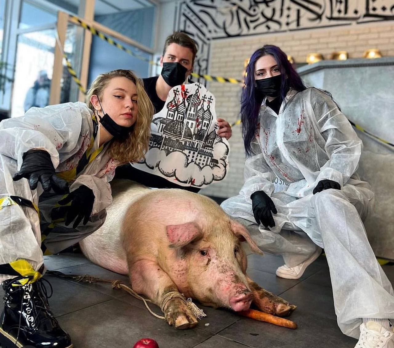 Сотрудники киевского тату-салона сети Tattoo Lamarch Studio выставили фото в соцсетях, на котором они запечатлены с привязанной свиньей и заявили, что готовятся на ее теле сделать татуировку. Этим они вызвали гнев зоозащитников.