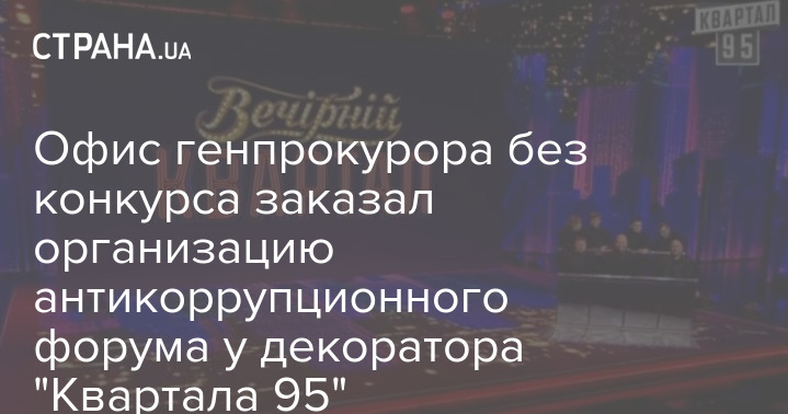 Офис генпрокурора без конкурса заказал услуги по организации Международного антикоррупционного форума у предпринимателя Виталия Олийника, который был зарегистрирован 3 месяца назад, а раньше работал с "Кварталом 95".