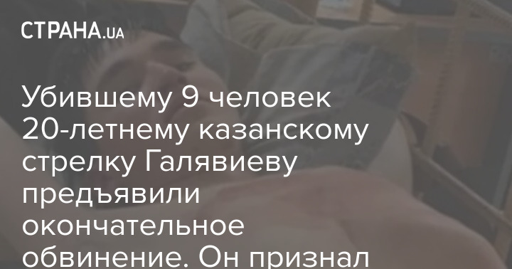Казанскому стрелку Ильназу Галявиеву, который в мае 2021 года устроил бойню в школе и убил семерых детей и двоих взрослых, предъявлено окончательное обвинение. Его будут судить сразу по нескольким статьям Уголовного кодекса РФ - за убийство, за покушение на убийство двух и более лиц, за изготовление и хранение взрывчатых веществ и взрывного устройства, а также за умышленное уничтожение и повреждение чужого имущества. Об этом сообщается на сайте Следкома РФ