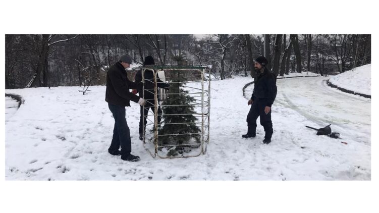 Во львовском парке елки оградили решетками от браконьеров. Источник: YouTube