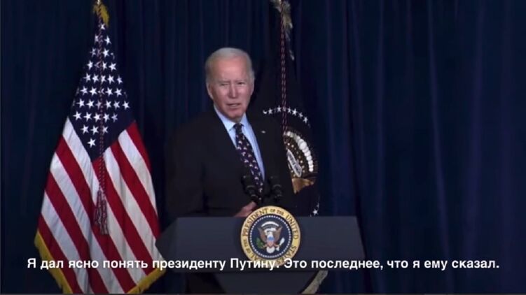 "Послушайте. Тут вот в чем дело. Я дал совершенно чётко понять президенту Путину и это последнее, что я ему сказал: если он вторгнется в Украину, то экономические последствия будут для его экономики разрушительными. Это первое. Разрушительными. Второе. Мы пошлем больше войск США и НАТО на восточный фланг. B9 (речь о Бухарестской девятке: Болгария, Венгрия, Латвия, Литва, Польша, Румыния, Словакия, Чехия и Эстония - Ред.). Это страны НАТО, в отношении которых у нас есть священное обязательство защищать их от любых атак России. Третье. Влияние всего этого на Россию и отношение к ней в мире серьезно изменится. Будет заплачена ужасная цена. И мы будем продолжать оказывать Украине помощь по защите украинского народа", - сказал Байден.